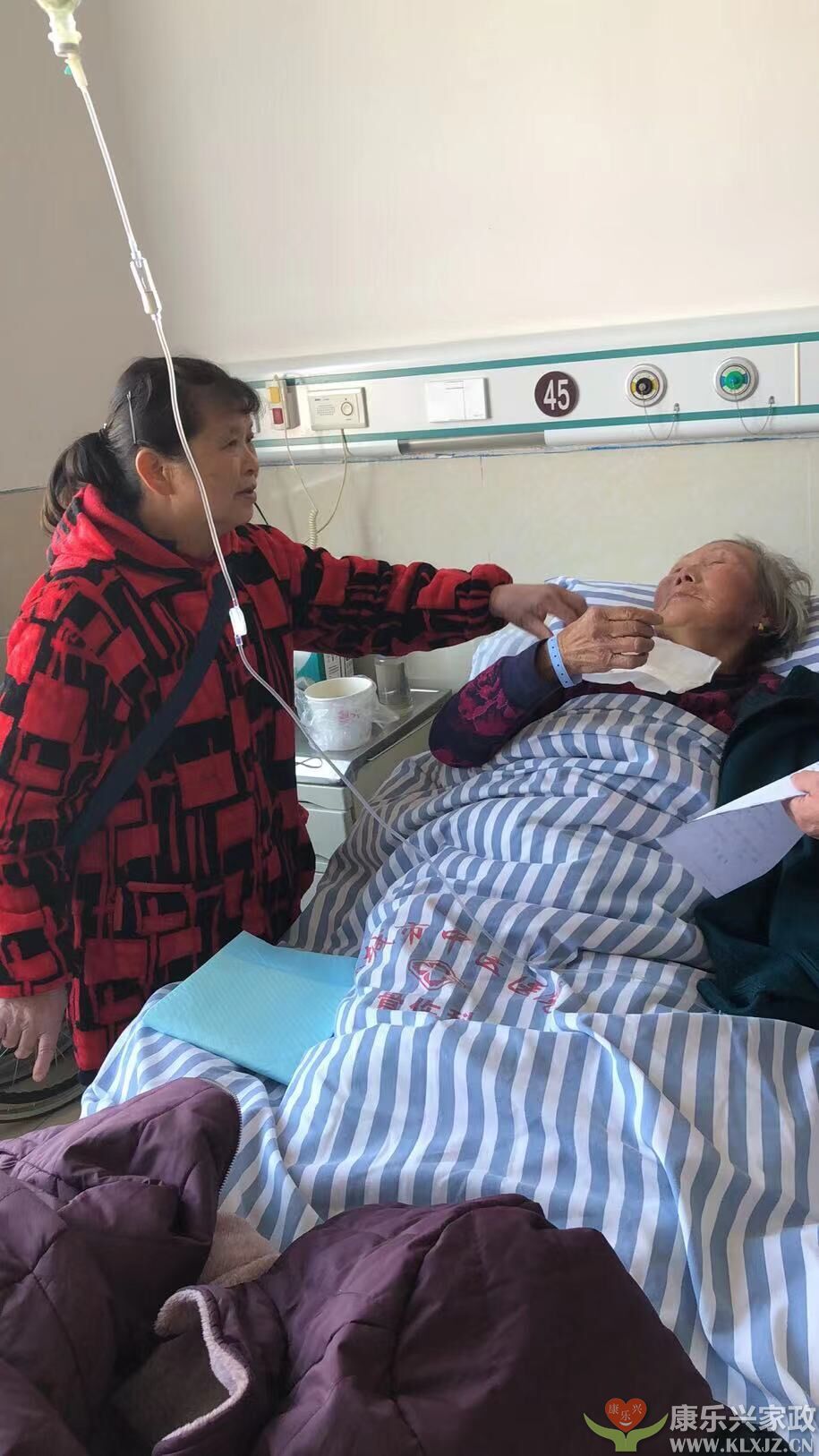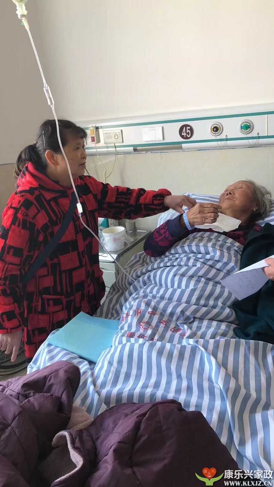 麻城康樂興家政麻城醫(yī)院護(hù)工2022.1.3號(hào)案例,康樂興家政護(hù)工護(hù)理中醫(yī)院住院老奶奶,上圖護(hù)工吳師傅剛喂食完老奶奶。康樂興家政王總拍攝于麻城中醫(yī)院。