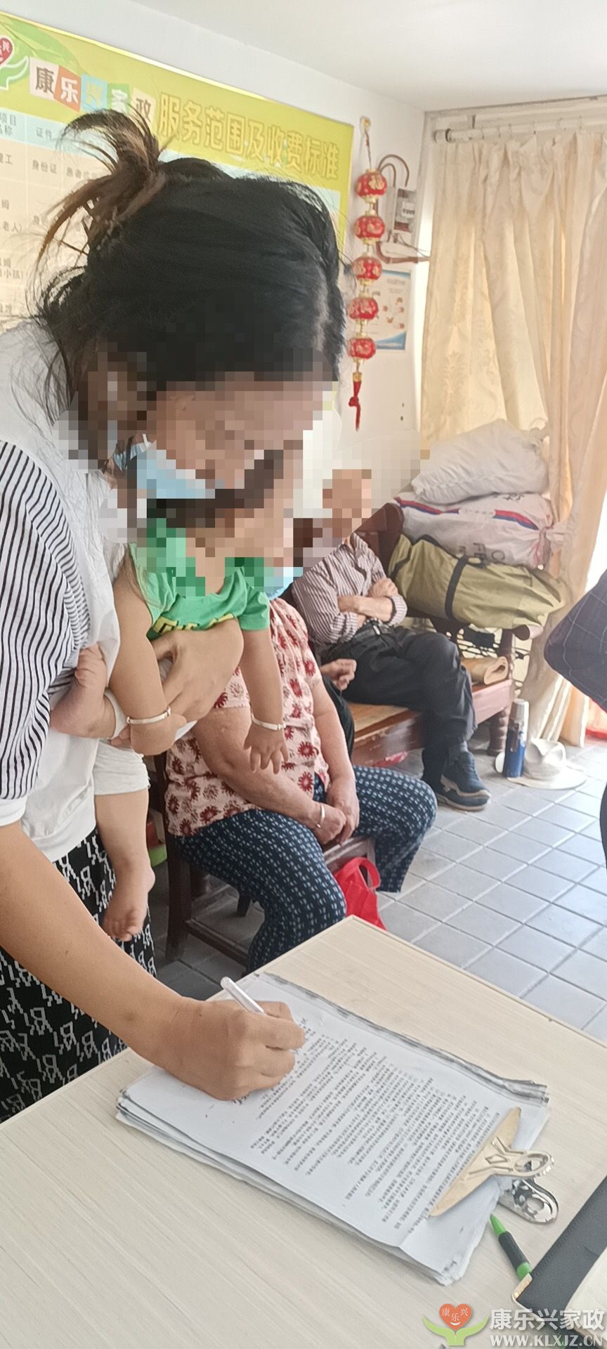 2021年9月15日上午麻城順河客戶來公司請保姆居家照顧老人,上圖為客戶正在簽訂家政服務(wù)合同。